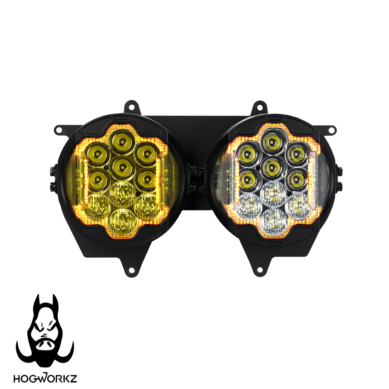 Amp up the aggression on your Harley with the HogWorkz Sabretooth LED Headlight for Road Glides two thousand fifteen to twenty-five. Sharp, fang-like daytime running light grabs eyes while twenty high-intensity LEDs blast ninety percent more low-beam power and forty-five on high—crushing shadows for ultimate road dominance. Tight, glare-free beam pattern owns any weather, from storm to sun. Battle-ready IP-sixty-seven waterproof build, shatter-resistant lens, and vibration-proof aluminum housing take the beating. DOT-legal, plug-and-play simplicity drops in minutes. Lifetime warranty from HogWorkz means no excuses—just raw, reliable light. Snag yours and roar ahead.